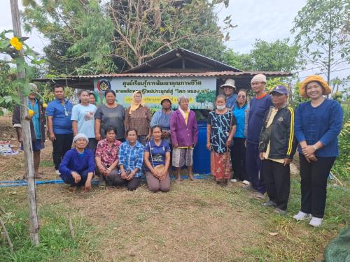 โดยมีวัตถุประสงค์ เพื่อขยายผลการน้อมนำหลักปรัชญาของเศรษฐกิจพอเพียง สู่ครัวเรือนโดยรอบศูนย์เรียนรู้การพัฒนาคุณภาพชีวิต ตามหลักทฤษฎีใหม่ ประยุกต์สู่ “โคก หนอง นา” อย่างน้อย 10 ครัวเรือน เพื่อส่งเสริมการลดรายจ่ายและเพิ่มรายได้ให้กับครัวเรือน โดยการส่งเสริมการปลูกผักสวนครัว สร้างความมั่นคงทางอาหาร แบ่งพันธุ์กล้าไม้ ขยายผลการสร้างคลังอาหารชุมชน “ศูนย์แบ่งปันเมล็ดพันธุ์และต้นกล้า” ในระดับครัวเรือนและชุมชน และเป็นการส่งเสริม สนับสนุนให้สมาชิกเครือข่าย โคก หนอง นา ได้ปรับปรุง พัฒนา ศูนย์การเรียนรู้ ให้มีสภาพแวดล้อมที่เหมาะสมกับการเป็นศูนย์การเรียนรู้ที่ดีขึ้น โดยมีการดำเนินกิจกรรม ดังนี้