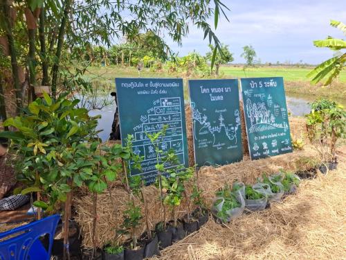 1. การถ่ายทอดความรู้แนวทางการดำเนินงานโคก หนอง นา (บันได 9 ขั้น)